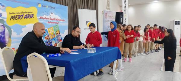 Çan2 Termik Santrali tarafından öğrencilere hediye edilen kitaplar, gerçekleştirilen imza günü kapsamında yazar Mert Arık tarafından imzalandı.