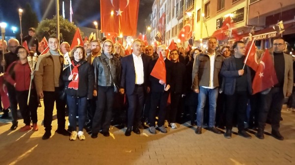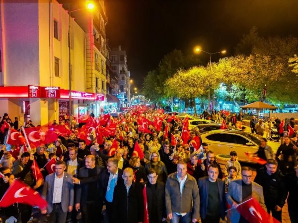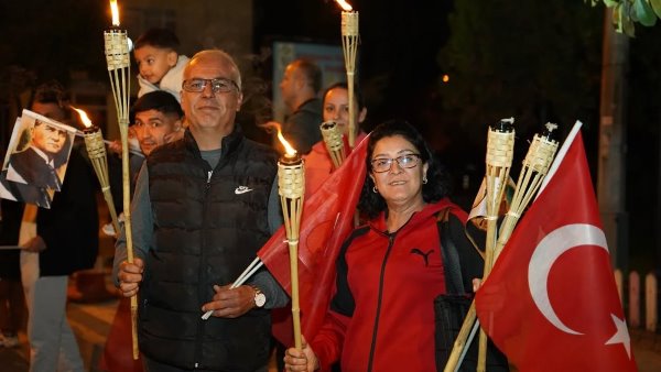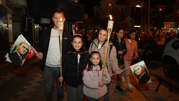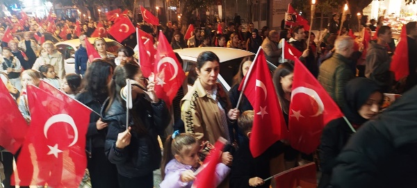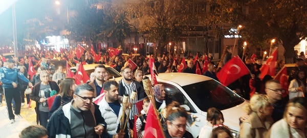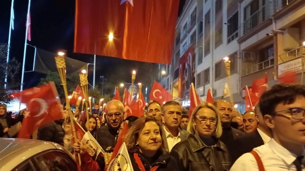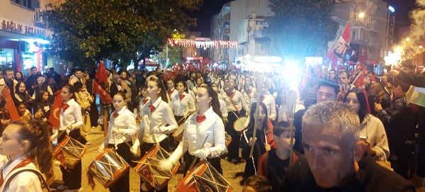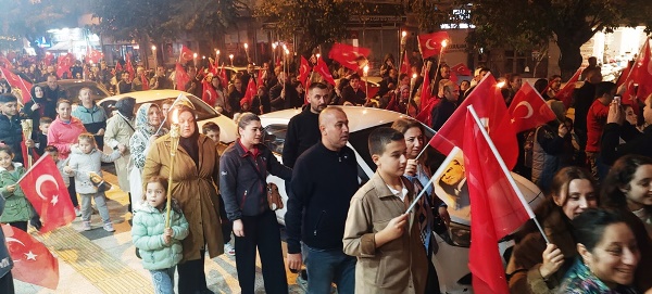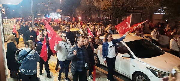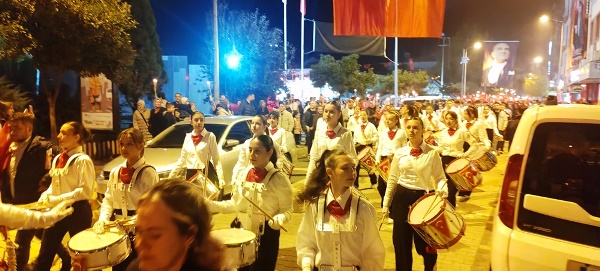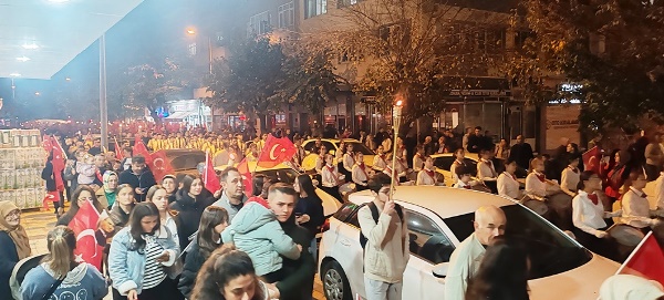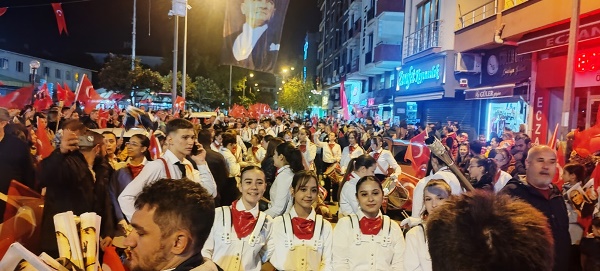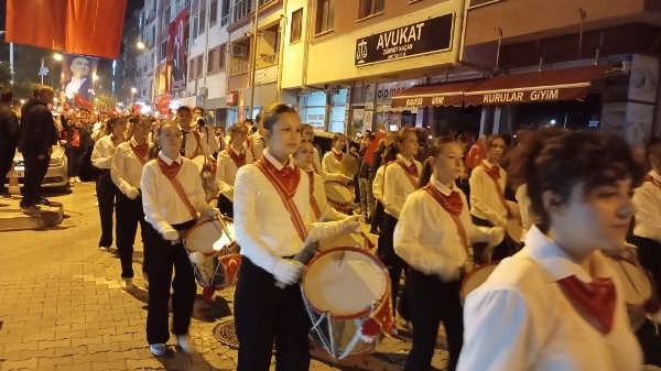 Akşam saatlerinde Atatürk Şehir Meydanı’nda toplanan vatandaşlar, ellerinde Türk bayrakları ve meşalelerle kortej oluşturarak “Mustafa Kemal’in Askerleriyiz” sloganlarıyla meydanı ve caddeleri inletti. Yürüyüş, ÇİBAL Bandosu eşliğinde Atatürk Caddesi’nden başlayarak Dr. Hacı İbrahim Bodur Caddesi, Barış Yolu, Sevgi Yolu ve Bülent Ecevit Caddesi güzergâhında devam etti. Kortej, yine Atatürk Şehir Meydanı’nda son buldu.